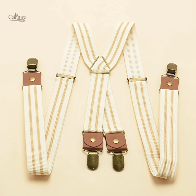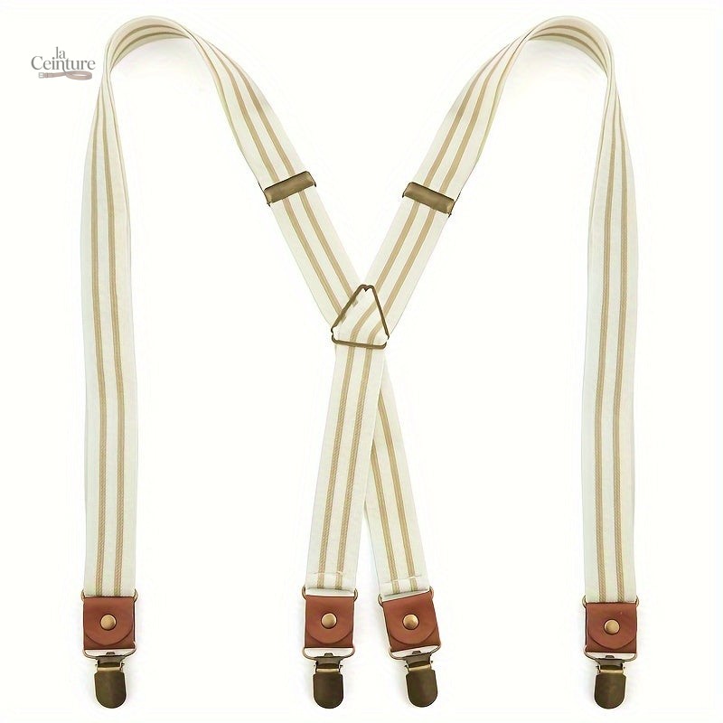 Rehaussez votre style avec ces bretelles homme à rayures vintage, un accessoire conçu pour ceux qui apprécient un look rétro et élégant. Avec leurs pinces métalliques solides, elles garantissent un maintien optimal tout au long de la journée.