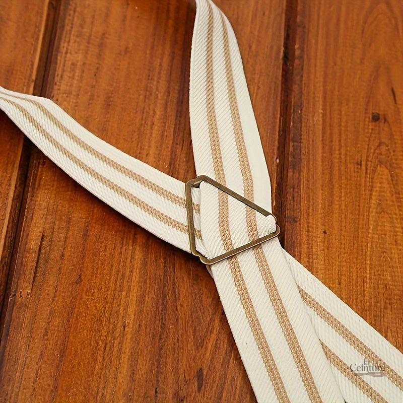 Ces bretelles se distinguent par leur tissu épais et résistant, assurant une durabilité dans le temps. Les finitions en cuir véritable ajoutent une touche d’authenticité qui complète parfaitement le design chic des rayures. Chaque détail est pensé pour un usage quotidien élégant.