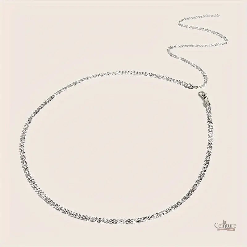 Ornée de strass scintillants, la Ceinture à Strass – Laguna se distingue par son design élégant et saisissant. Sa fine chaîne en métal, disponible en coloris argent et or, ajoute une note d’originalité tout en permettant de l’associer facilement à vos vêtements selon votre humeur et votre style. Elle est parfaite pour ceux qui souhaitent se démarquer avec subtilité.