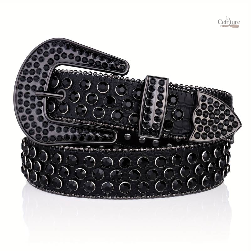 Ceinture cloutée noire pour homme, idéale pour le jean ou le pantalon. Disponible en plusieurs tailles (S à 2XL), elle allie style et fonctionnalité avec sa boucle classique.