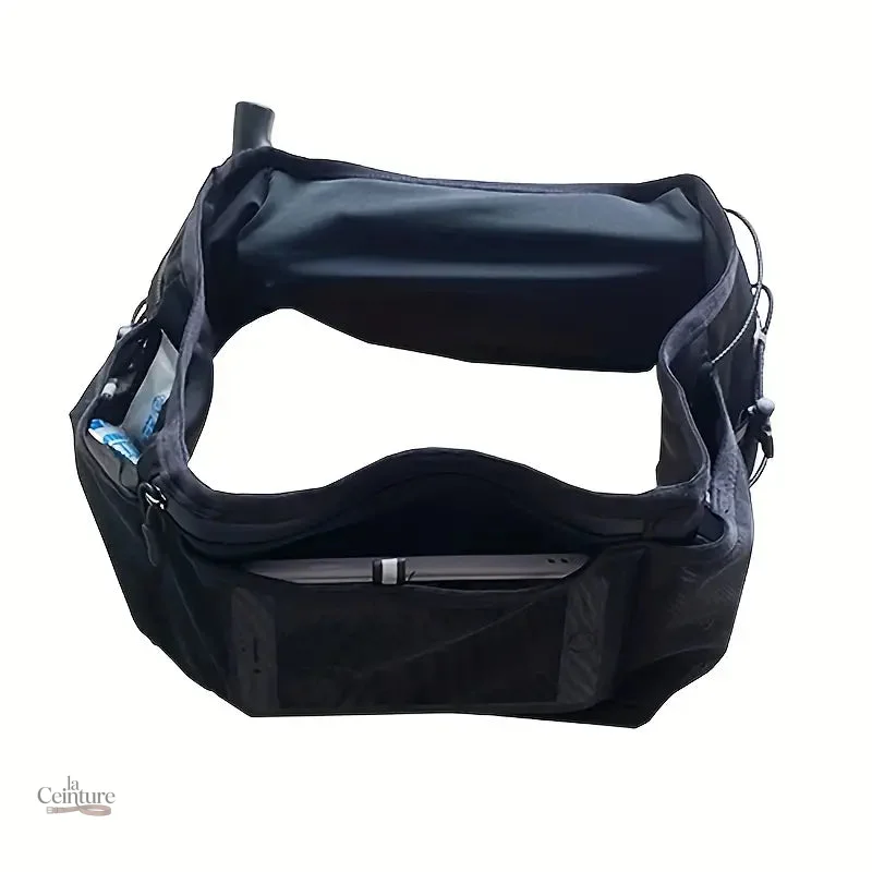 Alliant fonctionnalité et esthétisme, cette ceinture constitue également un choix stylé pour les activités sportives. Elle se marie facilement avec différents types de tenues, que ce soit pour un look décontracté ou plus sportif. Sa couleur noire intemporelle ajoute une touche moderne à votre équipement de trail.