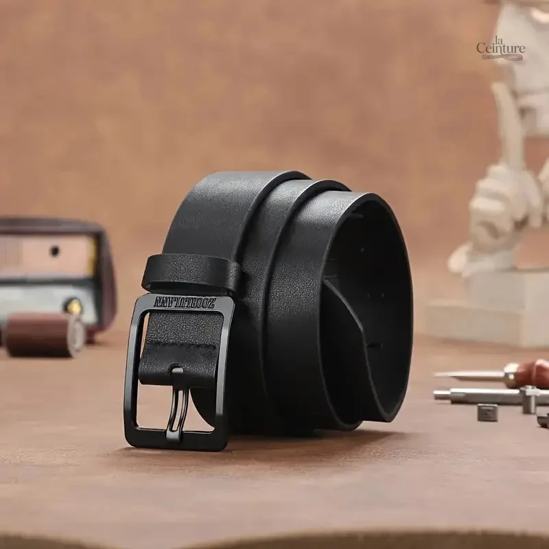 Ceinture en cuir pour homme, disponible en noir et marron. Taille ajustable de S à 2XL. Style classique, parfaite pour le jean ou le costume. Boucle traditionnelle, allie élégance et durabilité.