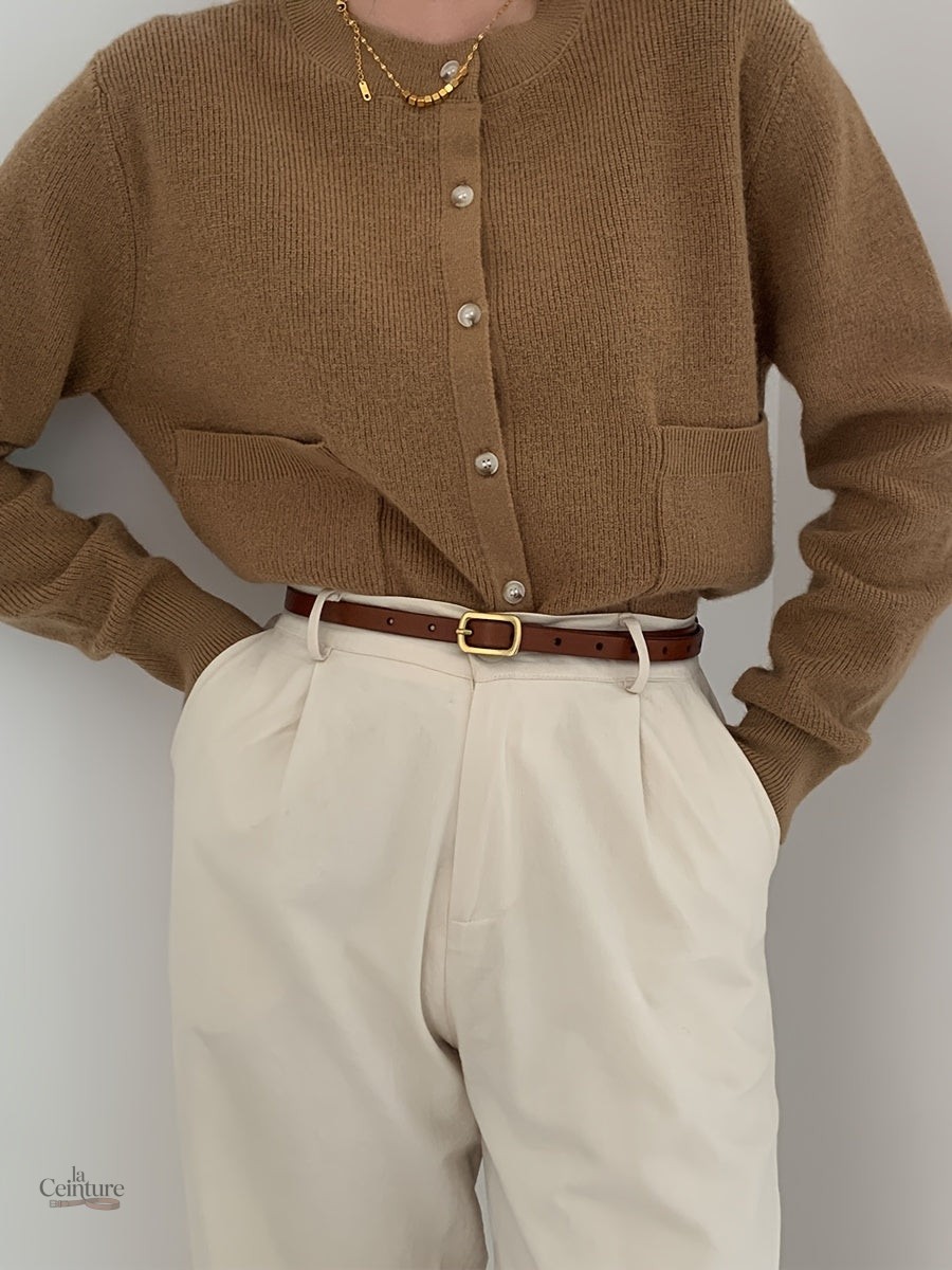 Dotée d’une silhouette délicate, cette ceinture fine est parfaite pour accentuer votre taille sur un pantalon taille haute ou en tant qu’accessoire pour une robe. Sa texture lisse et mate offre une allure moderne, tout en restant suffisamment discrète pour s’associer à divers styles, que vous optiez pour une tenue décontractée ou plus habillée.