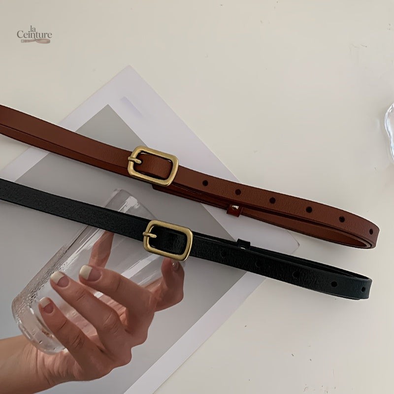 Ceinture fine en simili cuir avec boucle dorée vintage