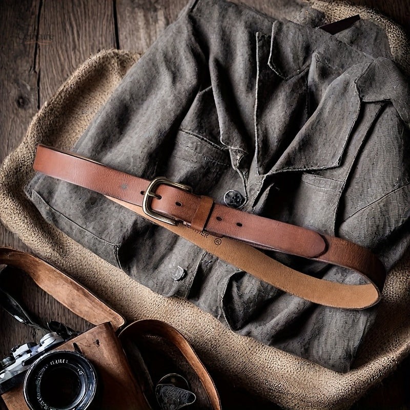Optez pour une ceinture homme en cuir épais pleine fleur, conçue pour allier robustesse et style. Sa boucle en métal brossé vintage ajoute une touche d’authenticité à cette pièce intemporelle.