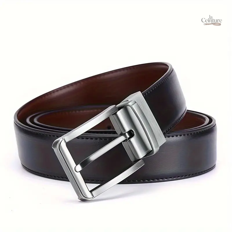 Avec sa boucle réversible, cette ceinture se transforme en un clin d’œil, vous permettant de choisir entre un élégant côté noir ou un chaleureux marron. Que ce soit pour un costume lors d’une réunion ou pour compléter un pantalon décontracté, elle s’adapte à chaque situation. Disponible en plusieurs tailles, elle assure un ajustement parfait pour un confort tout au long de la journée.