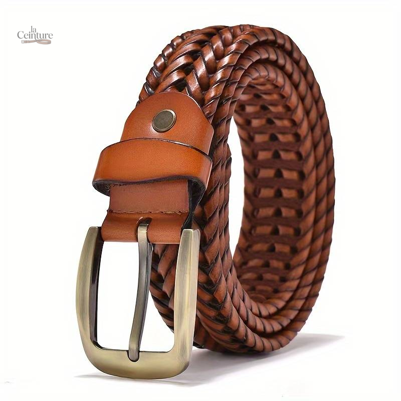 Ceinture tressée pour homme, disponible en noir, bordeaux et camel. Tailles S à 2XL. Design élégant adapté aux jeans et chinos, dotée d’une boucle classique pour un maintien optimal.